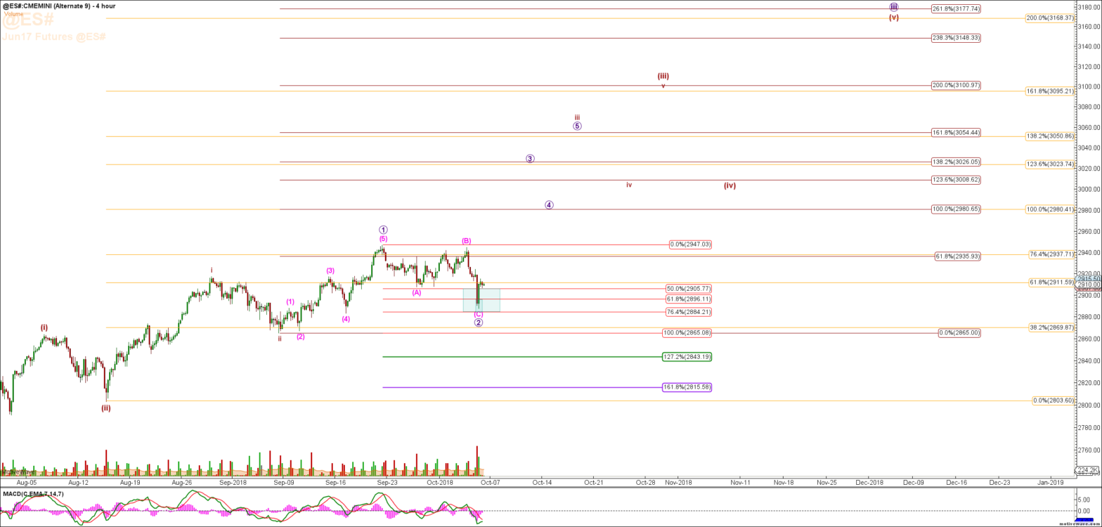 S&P 500 (ES) Charts & Video – Elliott Wave & Fibonacci 22nd Oct 2018