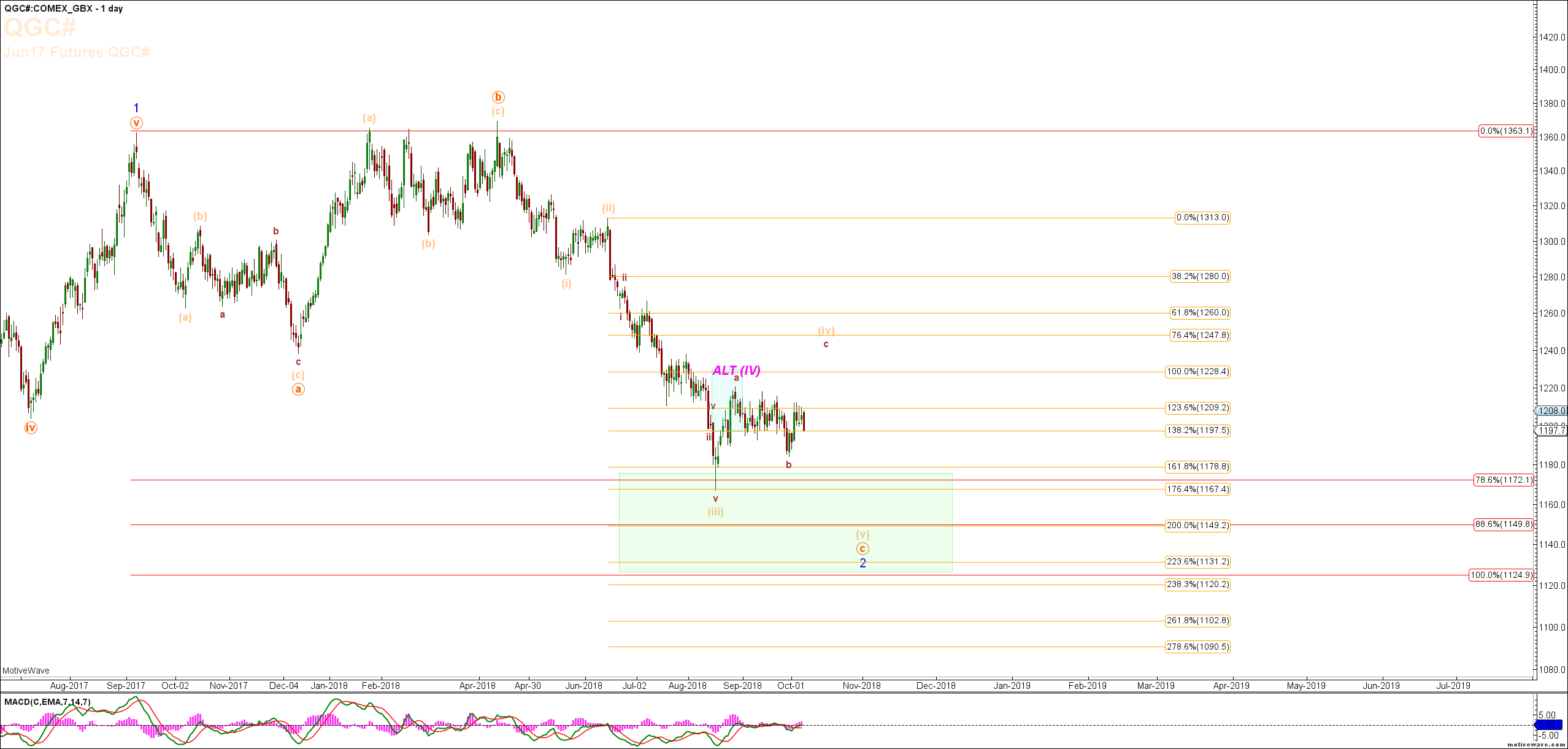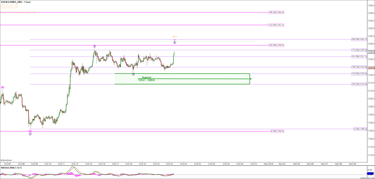 Gold GC Elliott Wave & Fibonacci Charts & Video 23rd Oct 2018