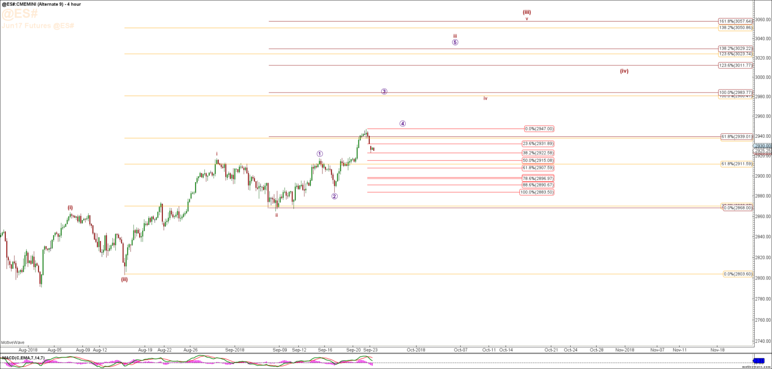 ES (E-Mini) Charts with Elliott Wave Counts & Video